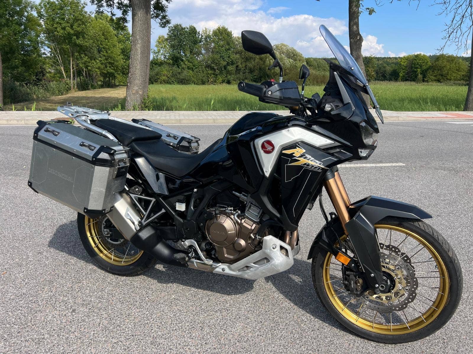 Zakoupeno nové v ČR, po celou dobu jeden majitel, set bočních kufrů v ceně, české TP.