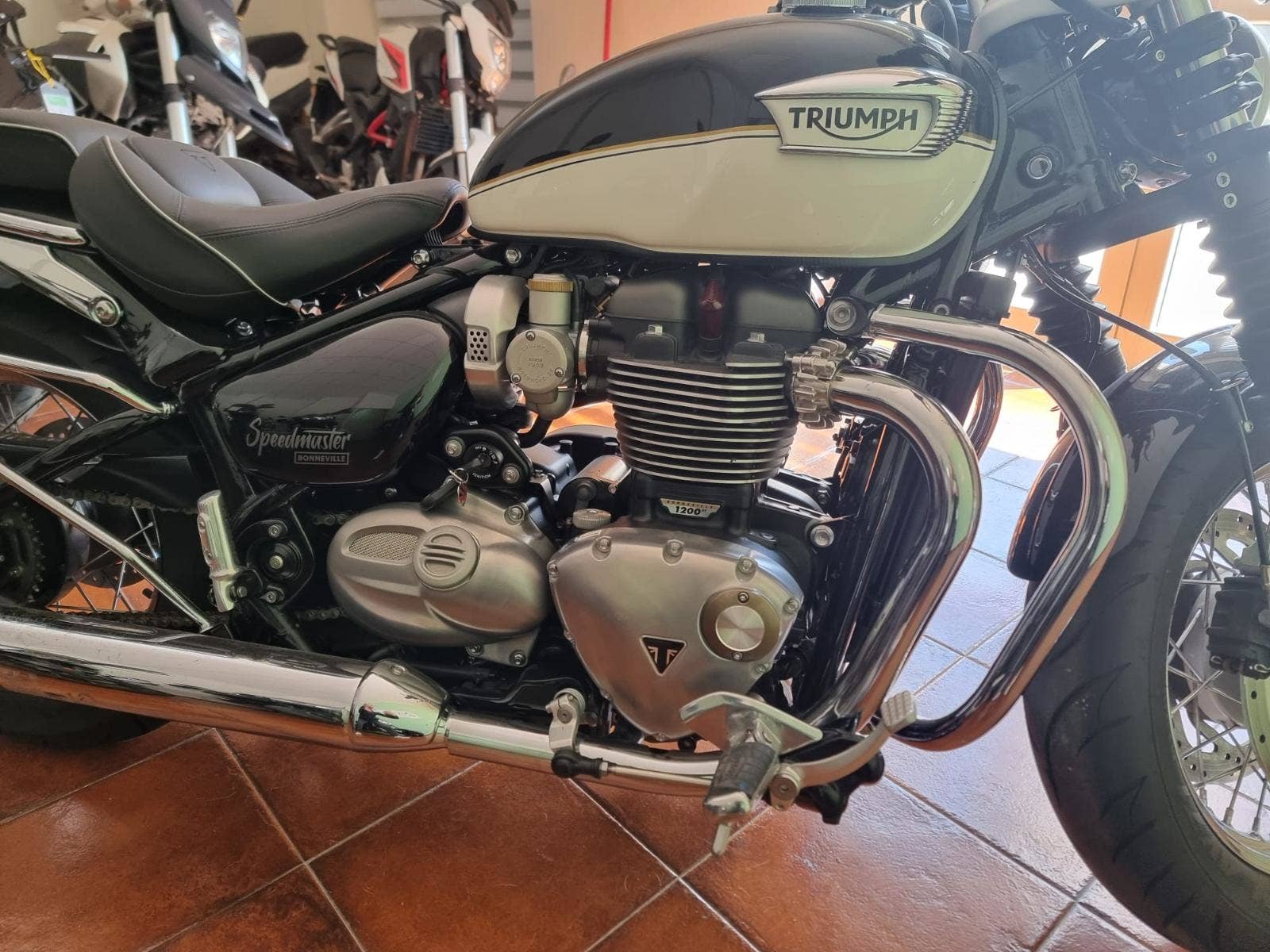 Triumph Bonneville Speedmaster T120 ABS of 2022 White/black - nevyužité, ve stavu nového motocyklu.